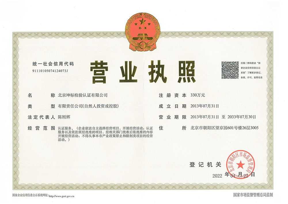 北京坤標(biāo)檢驗認(rèn)證有限公司