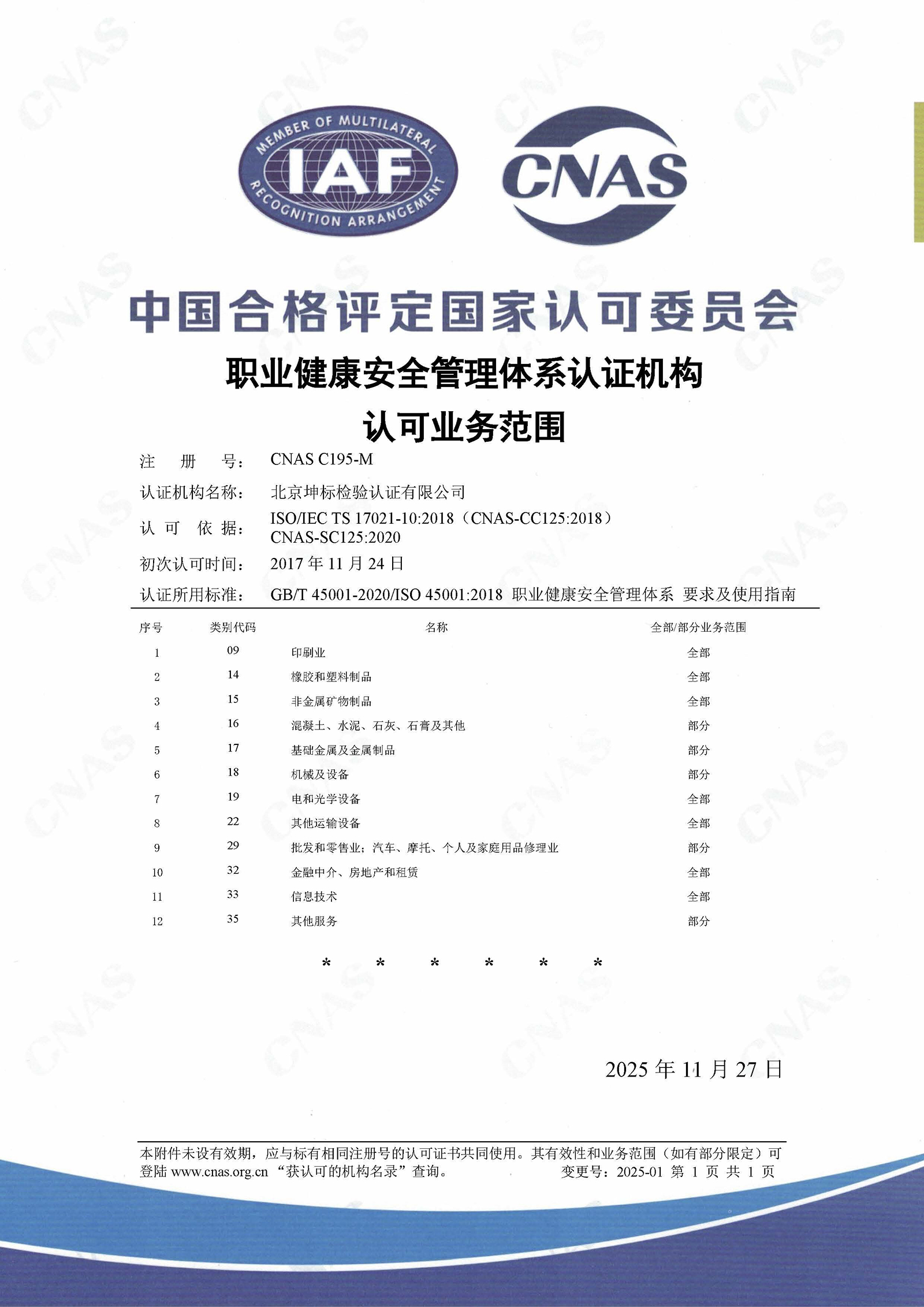 | OHSMS認(rèn)可業(yè)務(wù)范圍(明細(xì)) | |